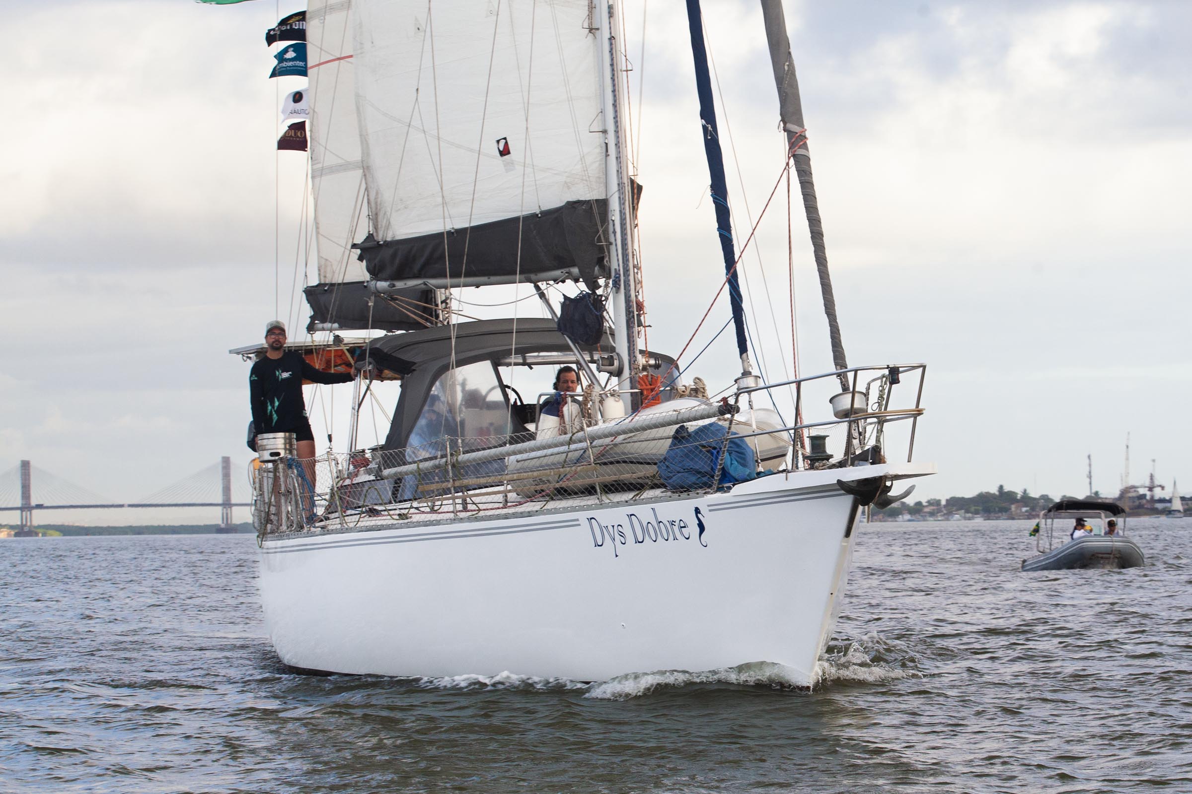 O veleiro Marujos Stanley (BA) como primeiro Fita Azul, já estabelecendo a marca de 20h57min a ser batida.