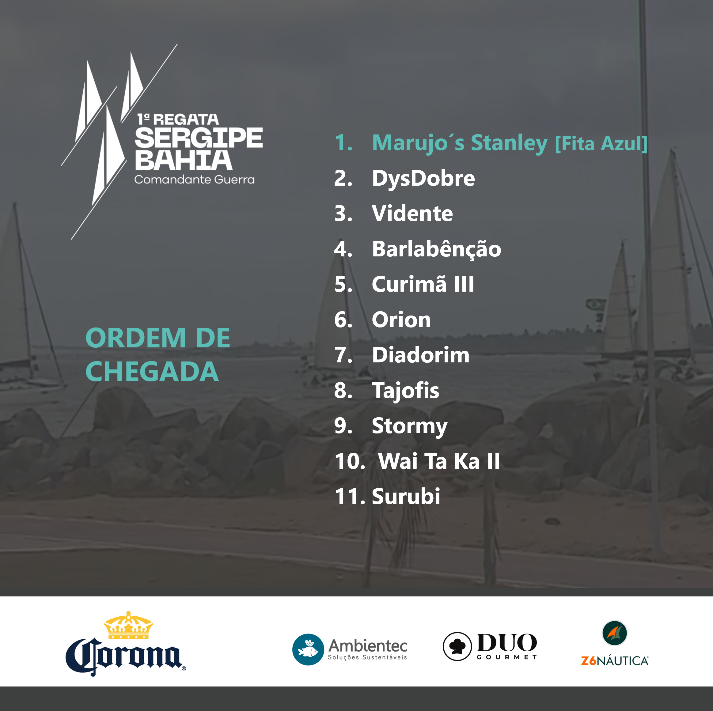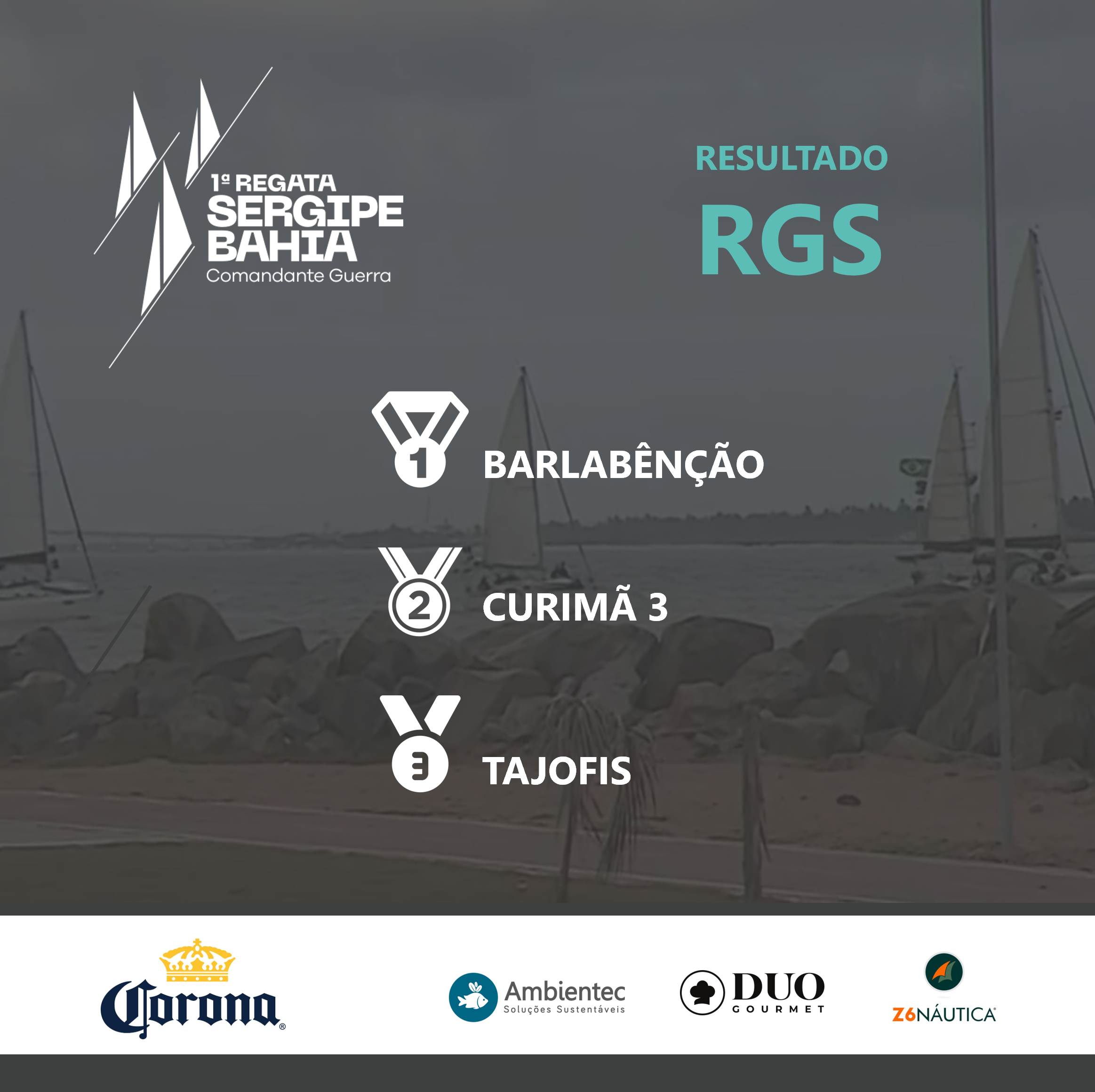 – Na classe RGS, o veleiro Barlabêncão ficou em primeiro, seguido pelo Curimã III e Tajofis, todos da flotilha Sergipana de Oceano.