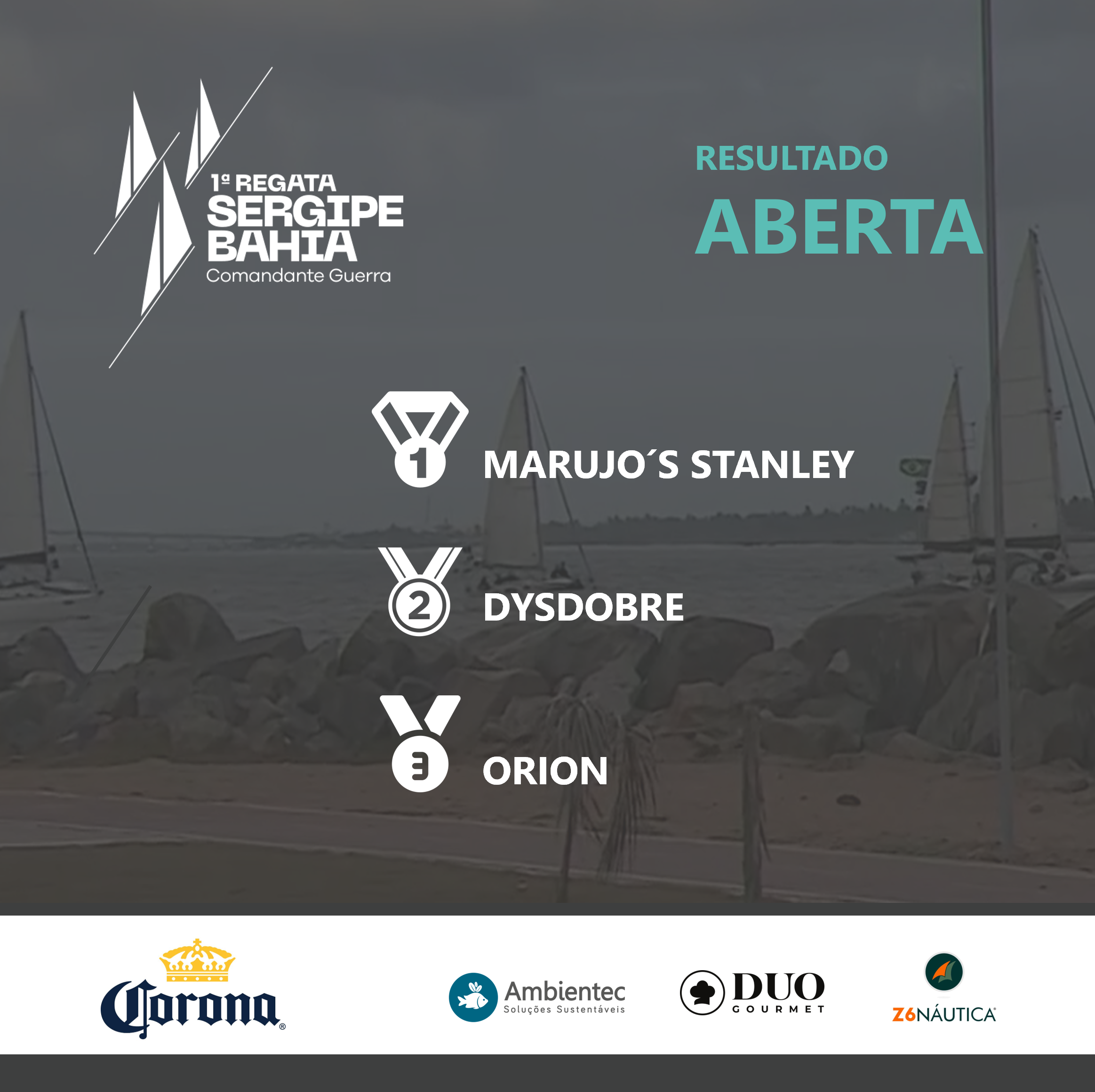 – Na classe aberta, o pódio foi formado pelos veleiros Marujos Stanley (1), Dys Dobre (2) e Orion (3).